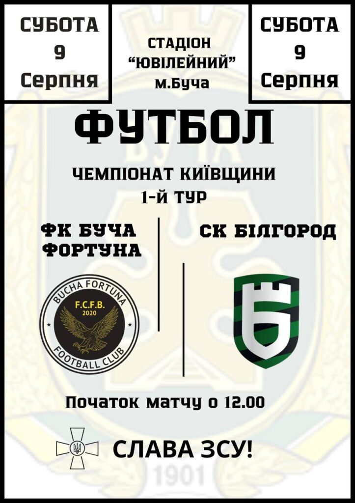 9 серпня о 12:00 на стадіоні «Ювілейний» відбудеться перша гра чемпіонату Київської області. Буча Фортуна» прийме СК «Білгород» з Білогородки.