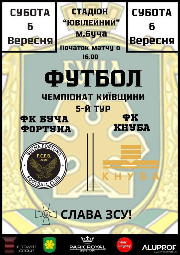 6 вересня о 16:00 у Бучі на стадіоні «Ювілейний» відбудеться футбольний матч.
