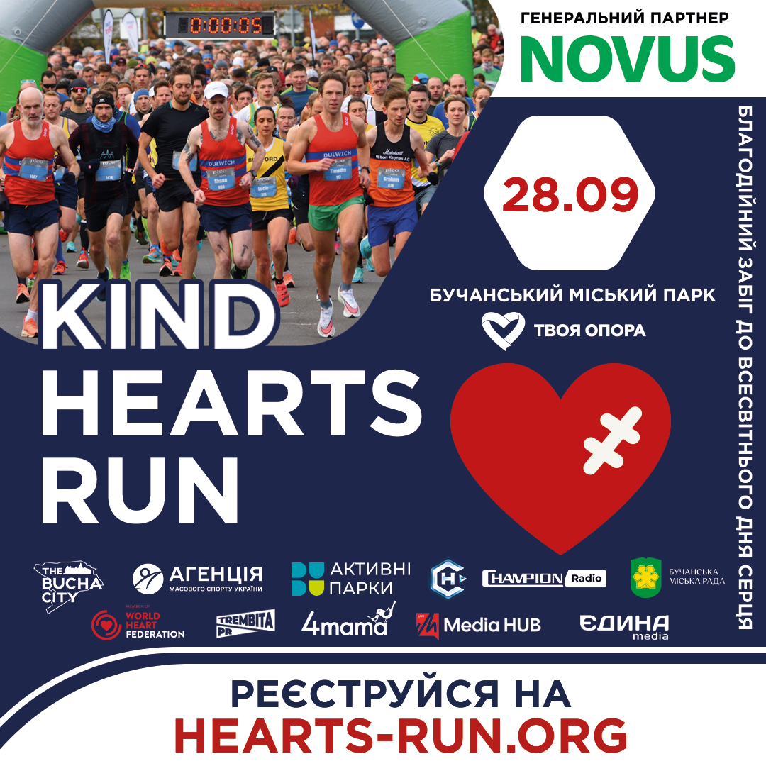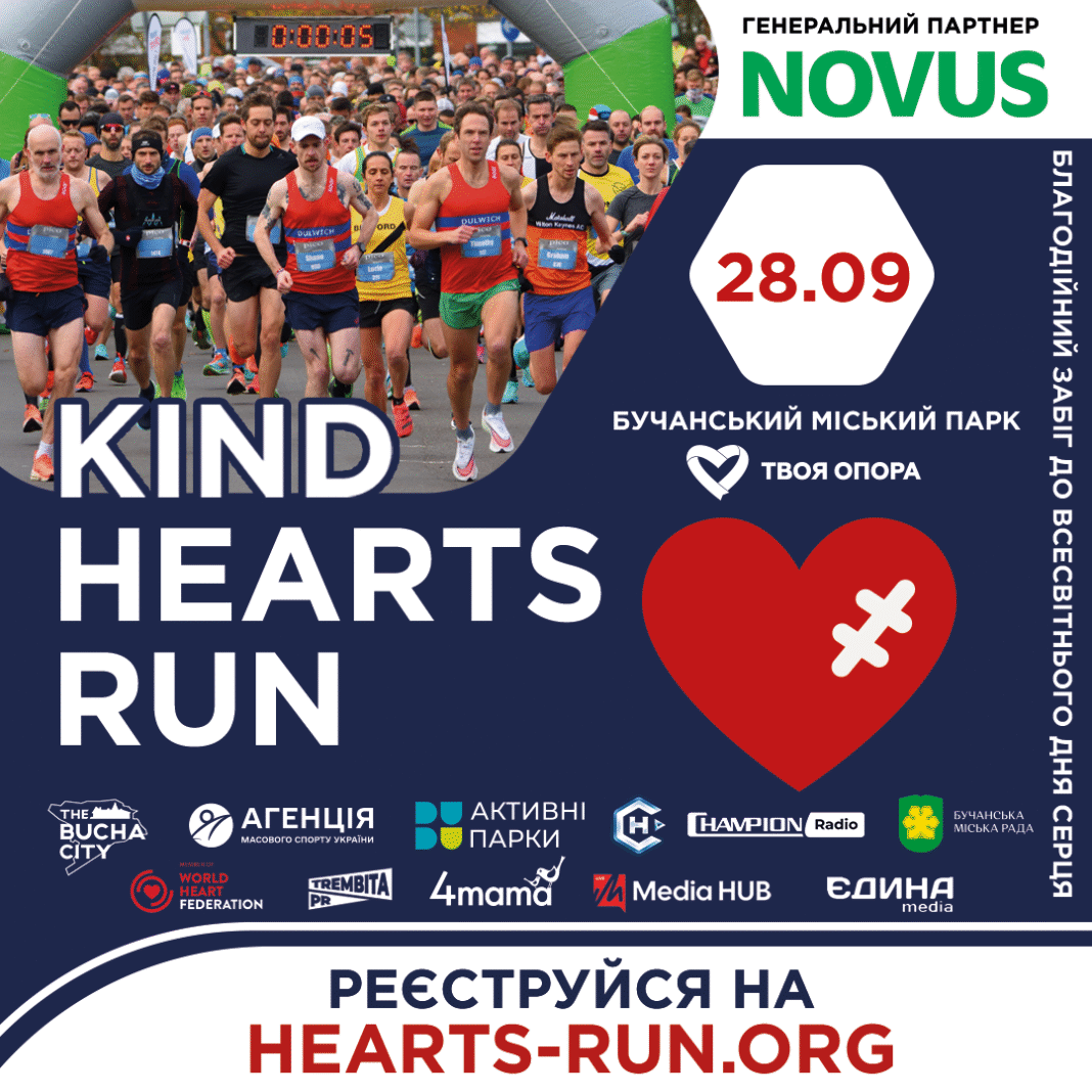 28 вересня у Бучанському міському парку відбудеться благодійний забіг Kind Hearts Run від фонду «Твоя опора» до Всесвітнього дня серця.