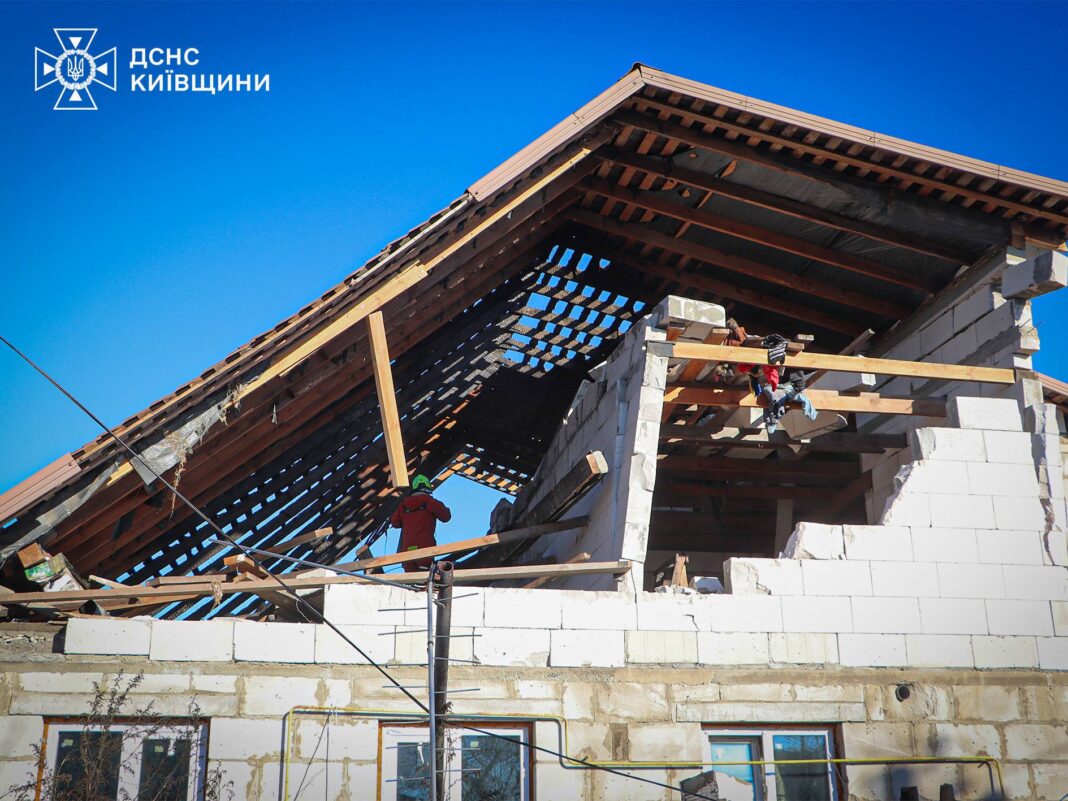 Вибуховою хвилею суттєво деформувало конструкції покрівлі та стіни другого поверху, які перебували в аварійному стані та становили реальну загрозу для людей. За інформацією ДСНС Київщини, працівники Аварійно-рятувального загону спеціального призначення провели демонтаж небезпечних елементів, використовуючи важку спецтехніку та спеціальне спорядження.