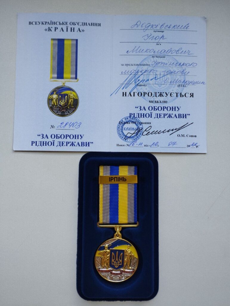 12 липня 2022 року був відзначений Ірпінською громадою медаллю «За оборону Рідної держави» (посмертно).