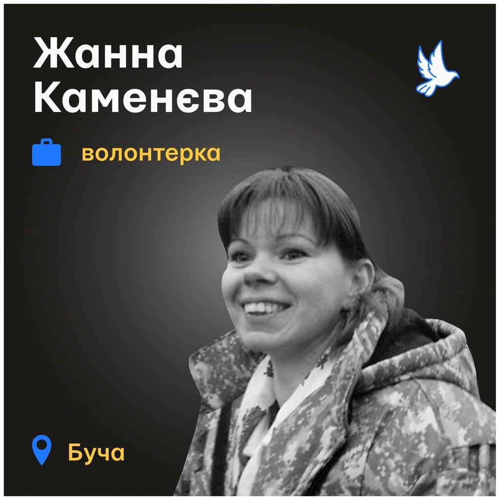 Жанна Каменєва була волонтеркою, яка ще з 2014 року допомагала військовим і цивільним. Після початку повномасштабного вторгнення вона вивезла дітей у безпечне місце, а сама повернулася у Бучу, аби допомогти мешканцям: підвозила продукти, ліки, евакуювала людей.