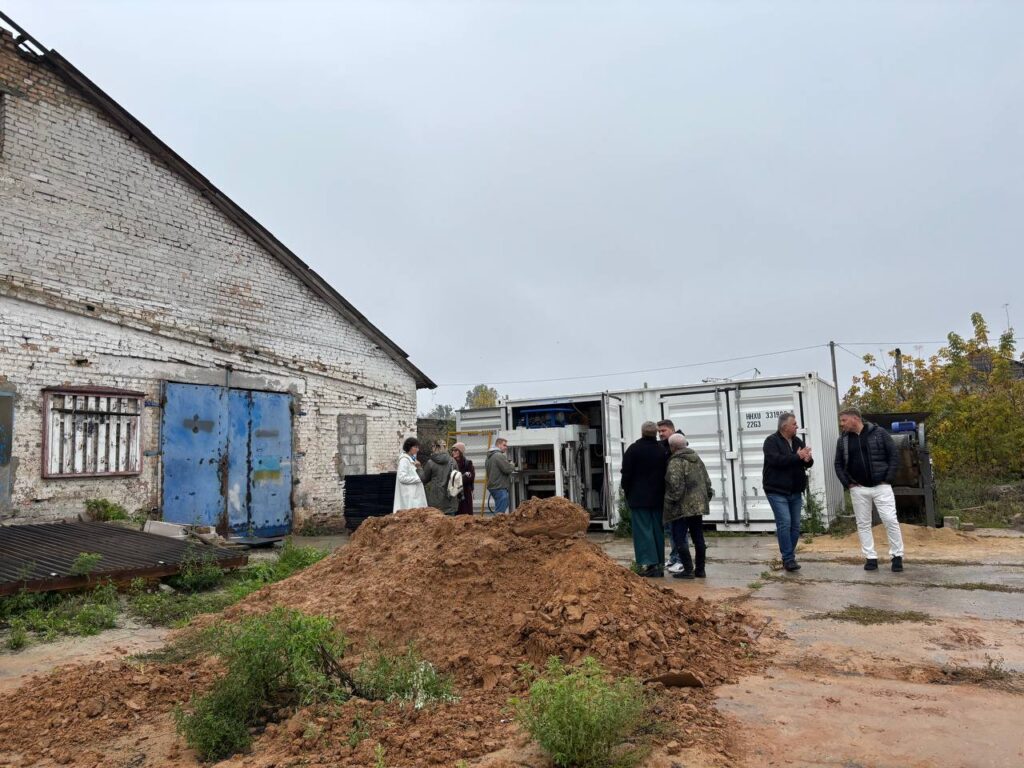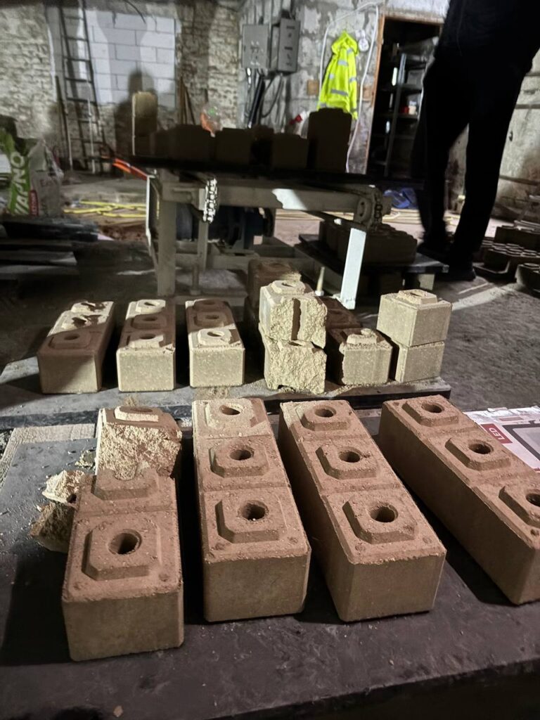 Поруч зі складом працює установка для переробки старої цегли. Подрібнювач перемелює її на дрібну фракцію, а потім, додаючи глину та клейку суміш, із цієї сировини виготовляють нові цеглини. Обладнання для цього передали партнери з Австралії.
