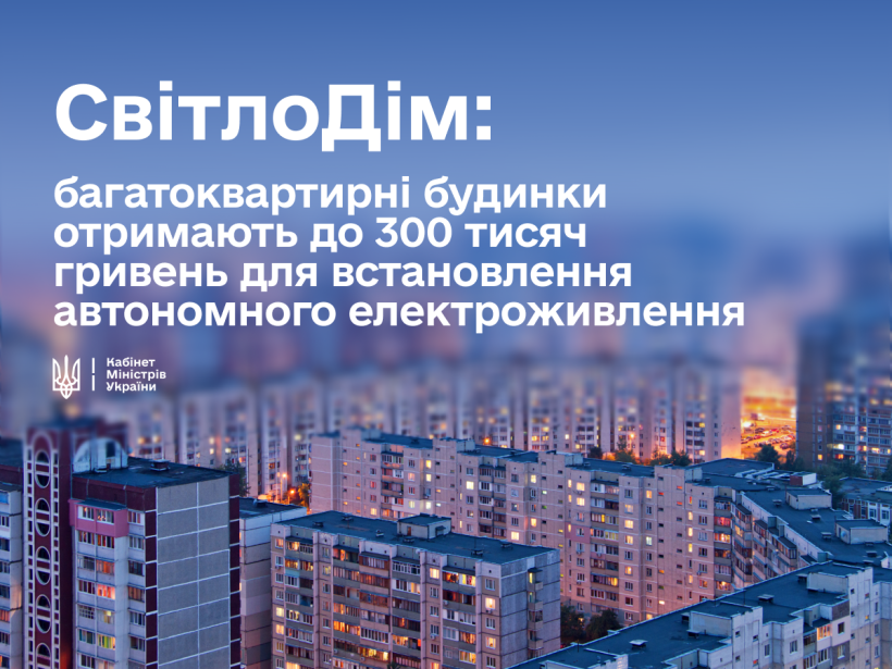 Це програма, за якою багатоквартирні будинки зможуть отримати від 100 000 до 300 000 грн на закупівлю обладнання для автономного живлення.