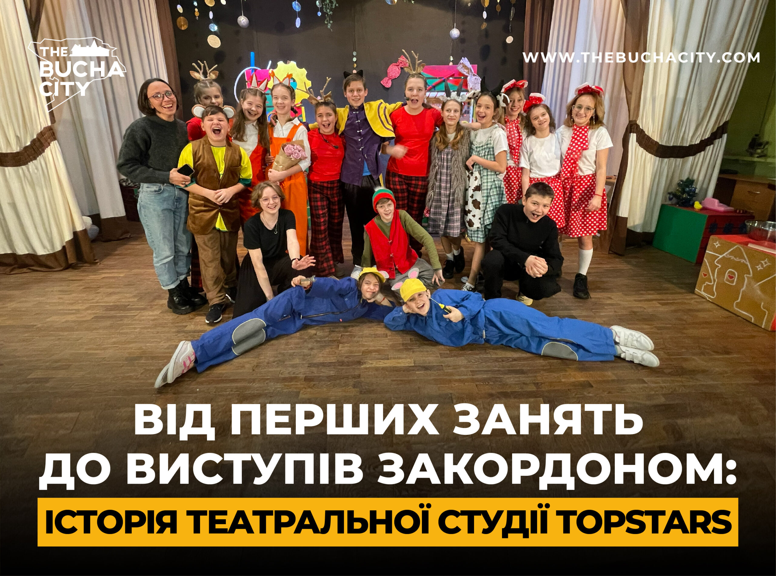 У Бучі вже 10 років працює театральна студія Topstars, де діти роблять свої перші кроки на сцені, вчаться працювати в команді, долати сором’язливість і відкривати власні таланти. За цей час студія перетворилася з невеликої групи занять з акторської майстерності на повноцінний дитячий театральний колектив із власними виставами, репертуаром, поїздками на фестивалі та міжнародними виступами.