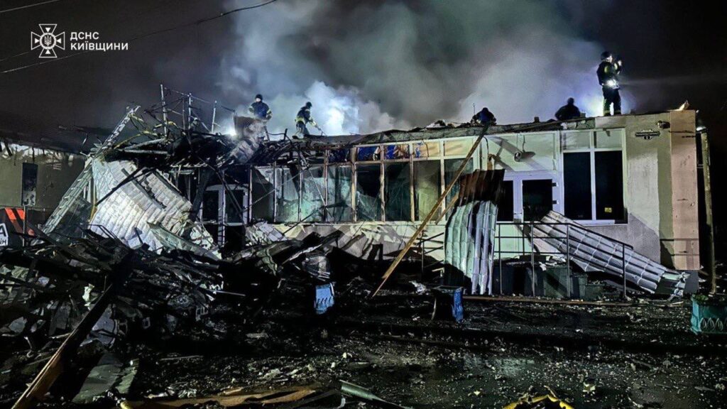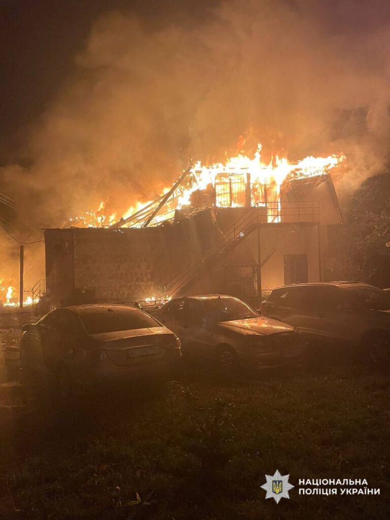 За інформацією КОВА, унаслідок ворожої атаки в Броварах пошкоджено 3 багатоповерхові будинки, 4 продуктові кіоски, 2 автомобілі знищено та 2 пошкоджено.