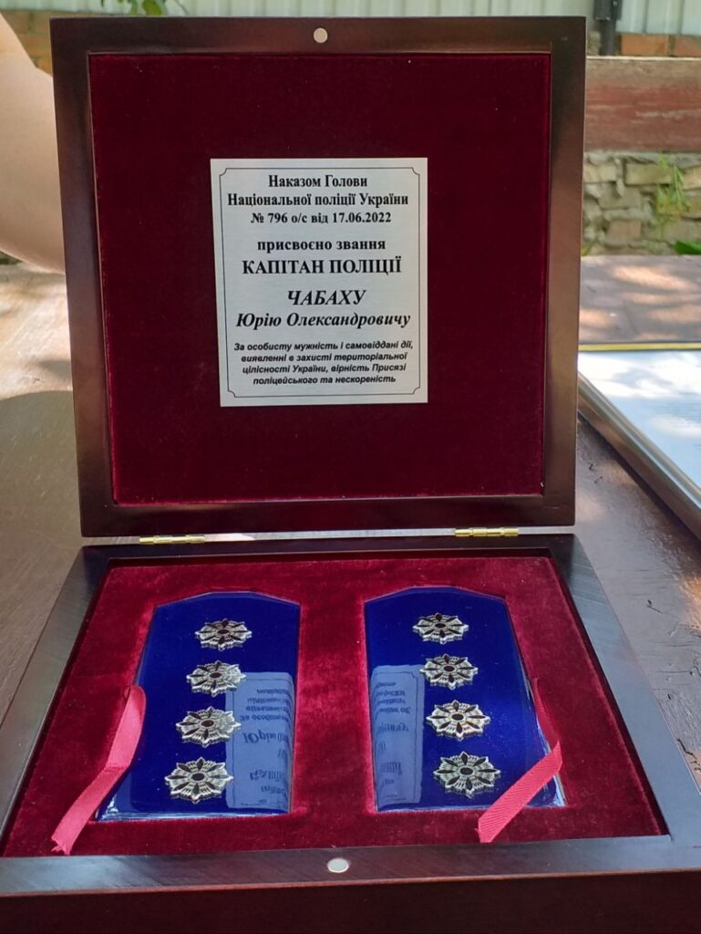 27 червня 2022 р. Юрію Чабаху посмертно присвоїли звання «Капітан поліції».