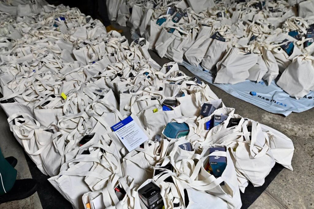 Всередині «Пакунку тепла» – зимовий спальник, павербанк та ліхтарики з батарейками, термос для гарячих напоїв, зимові шкарпетки, свічки, сірники та флікер.